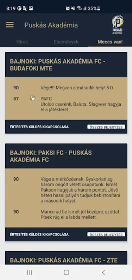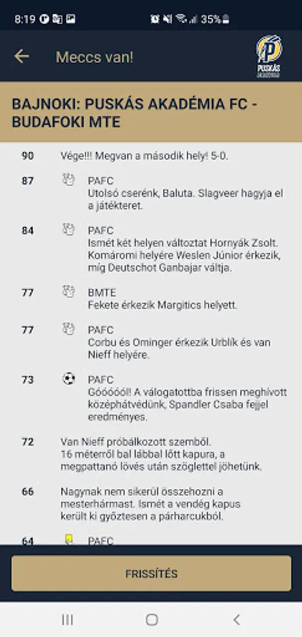 mobilappunk there again! The entire contents of pfla.hu available. Faster and more accurate than using a browser. If you want to always get notified when a new article is uploaded. Live channellings be able to see through the app. It's all about the Puskás Academy and the football.