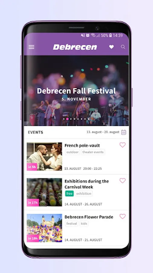 Debrecen’s events in one place! In the calendar menu of the main page, you can search for a specific time period to find out what is going on in the city at that time.