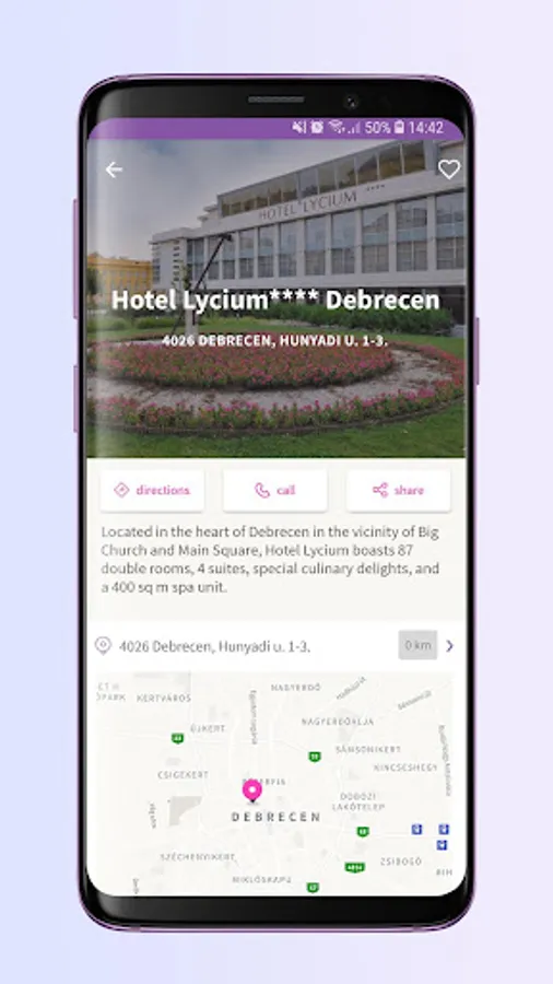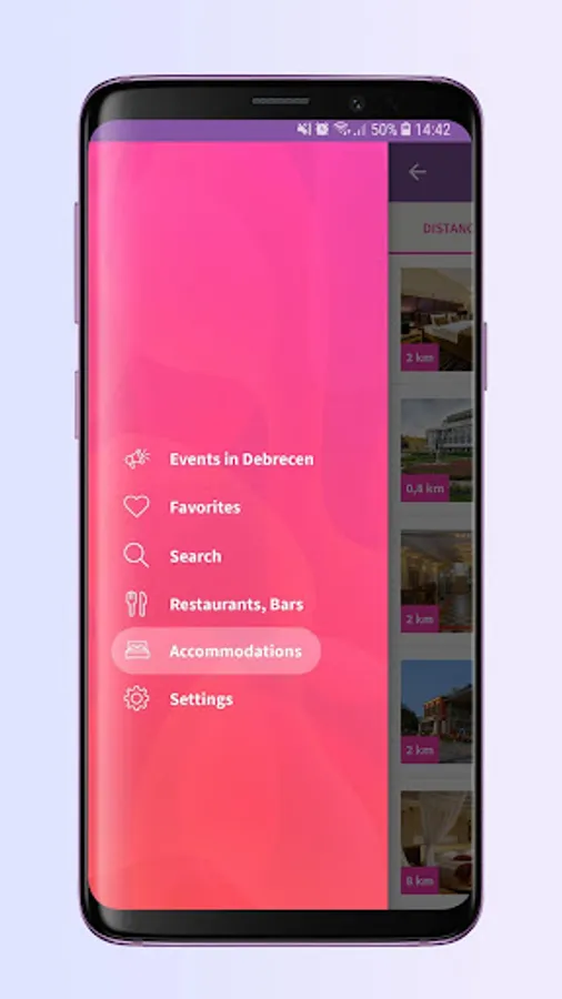 Spend some days in Debrecen! In the Accommodation menu, the app lists all the places to stay in details with rich gallery, contact information and booking opportunity to make Check-Ins as easy as possible.