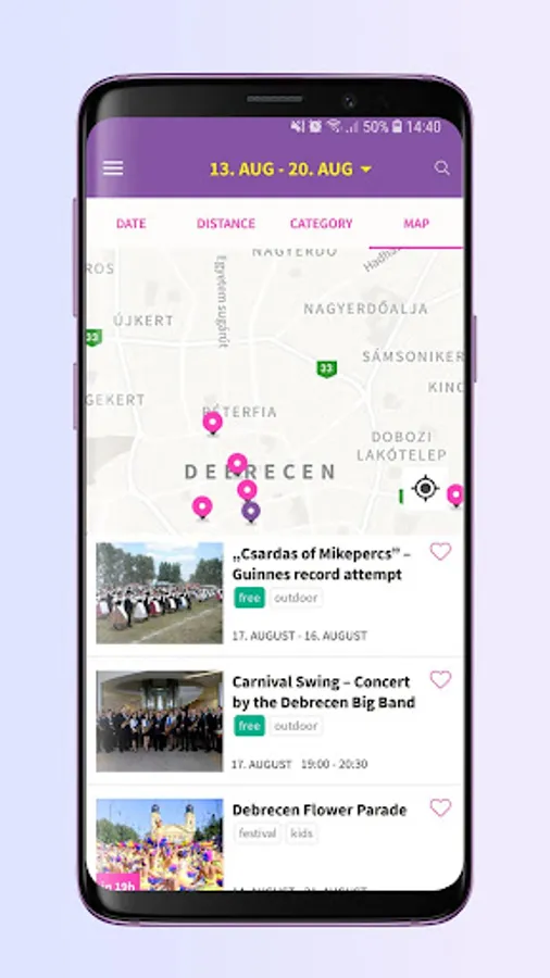 Debrecen's Events from a whole new perspective! By choosing map view you can browse the city’s events from another point of view.