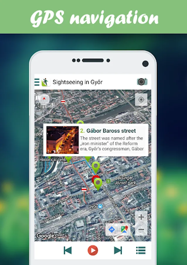 Not just the Point of Interests are included, but the tour along the sights are also well described with map and street view, many photos, and with textual background information, and in couple tours with listenable guidance.
