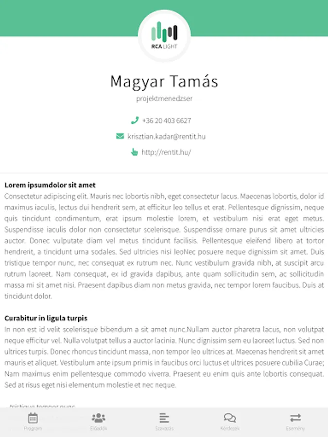 You can display and edit artist names, photos, titles, phone numbers, email addresses and website addresses, and a free text presentation (with basic formatting features). Performers entered into the system can be assigned to the lectures, and the performers' performances (title, time, location) are displayed among the performers.