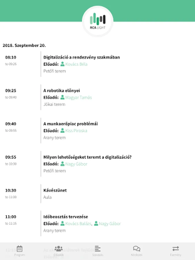 During the conference, participants can send questions to the speakers. These questions get to the artist after moderation. The moderator and the speaker can arrange the questions in different groups. Questions can also be displayed on the projector.