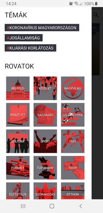 - Filtering option for the sub-pages of 24.hu, such as the Diverse Region, the BKV Monitor, the Rangadó; as well as the TV24 app is just a click away.
