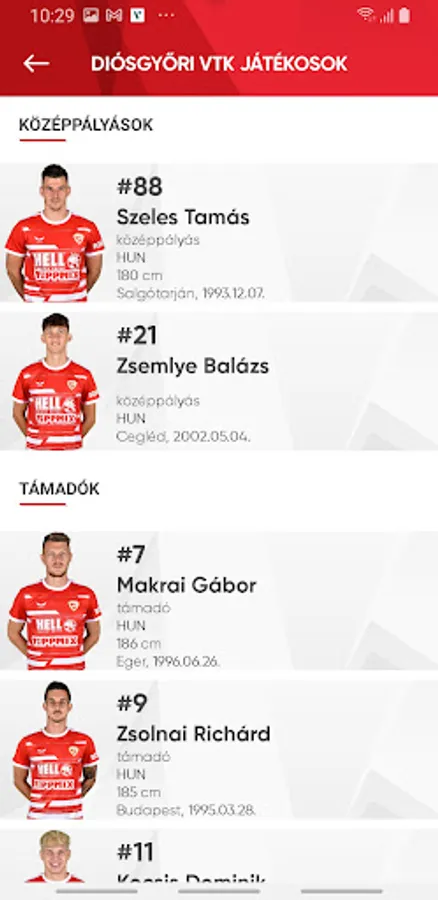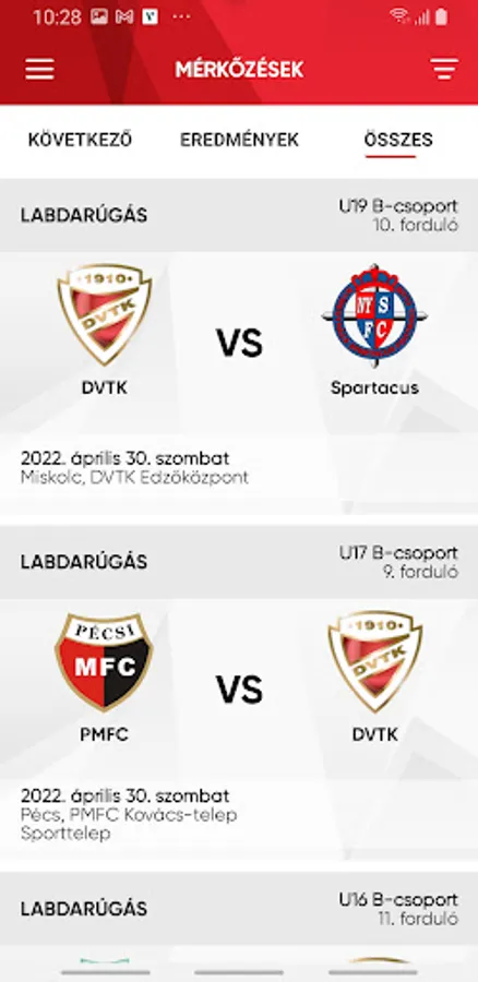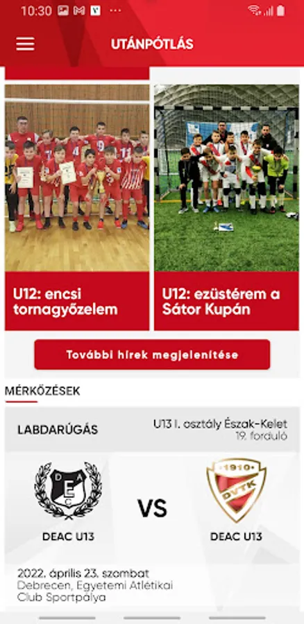 In addition to the news, the application of course includes the results and program of DVTK's teams in various championships, as well as the tables and the athletes from Diósgyőr, from the pros to the academics.