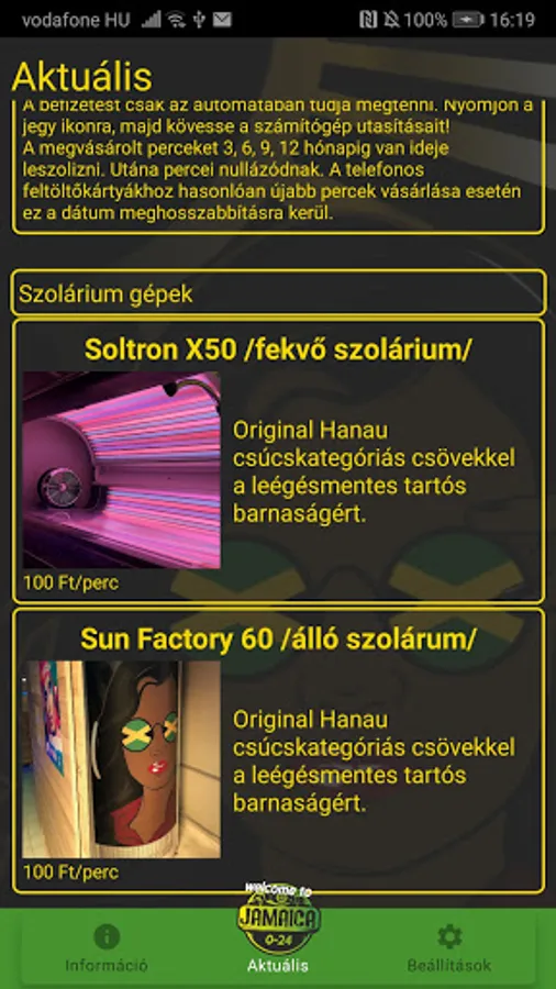 Application for contactless use of automatic solarium.