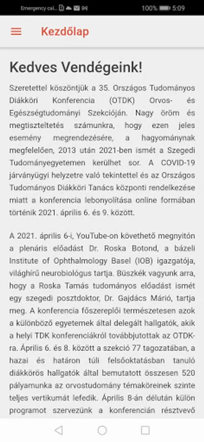 Informative application of the Medical and Health Sciences Section of the 35th National Scientific Student Conference.