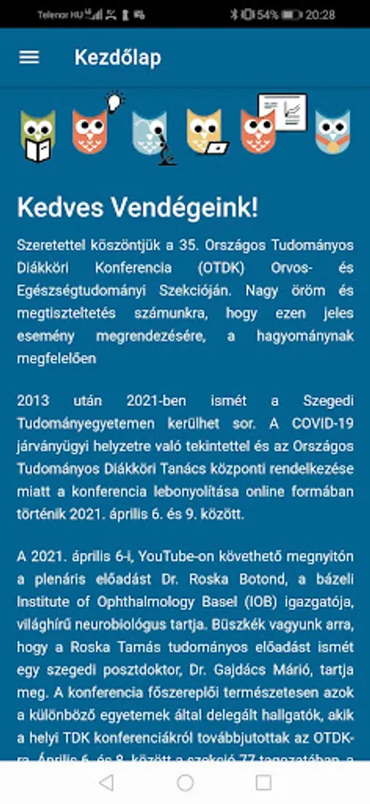 Informative application of the SZTEOK-FOK-GYTK-ETSZK Scientific Student Circle Conference.
