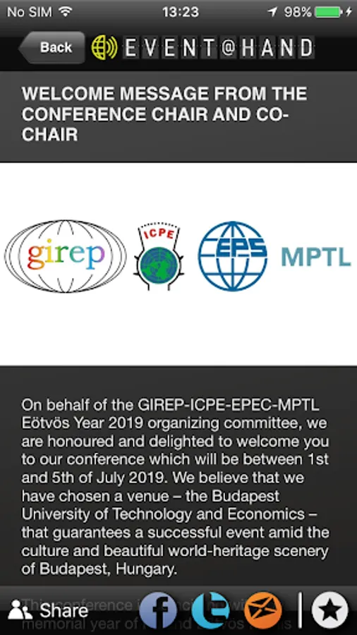 On behalf of the GIREP-ICPE-EPEC-MPTL Eötvös Year 2019 organizing committee, we are honoured and delighted to welcome you to our conference which will be between 1st and 5th of July 2019. We believe that we have chosen a venue – the Budapest University of Technology and Economics – that guarantees a successful event amid the culture and beautiful world-heritage scenery of Budapest, Hungary.