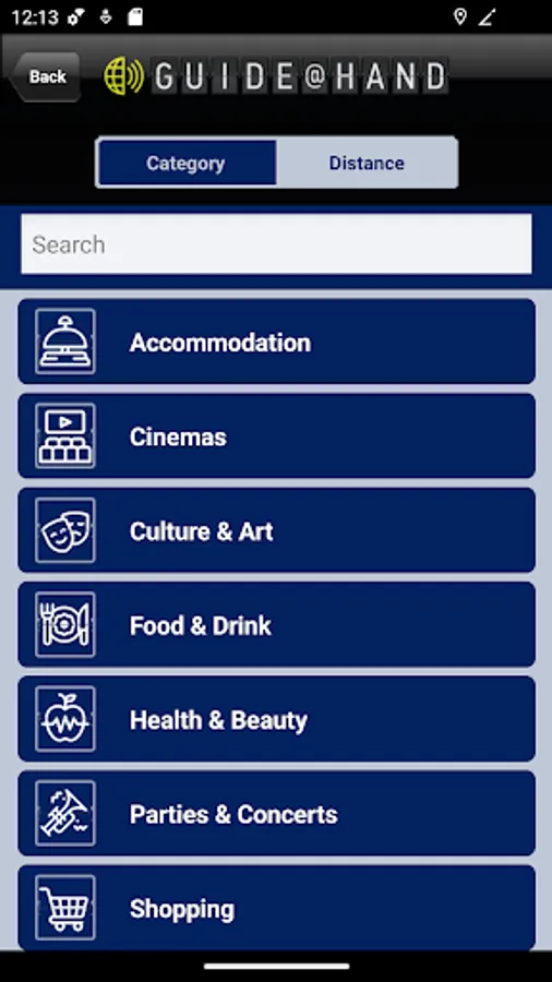 By installing GUIDE@HAND, you already have access to our offline city map. Your current location will be indicated on the map and you can easily browse various services (POIs) available in the city. You can set the default language here.