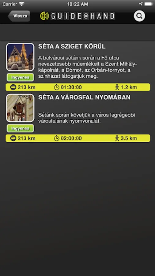 ENGLISH: GUIDE@HAND‘s full audio sightseeing content, tourist information, map and software is available in English and Hungarian. You can choose the default language when installing GUIDE@HAND to your mobile.