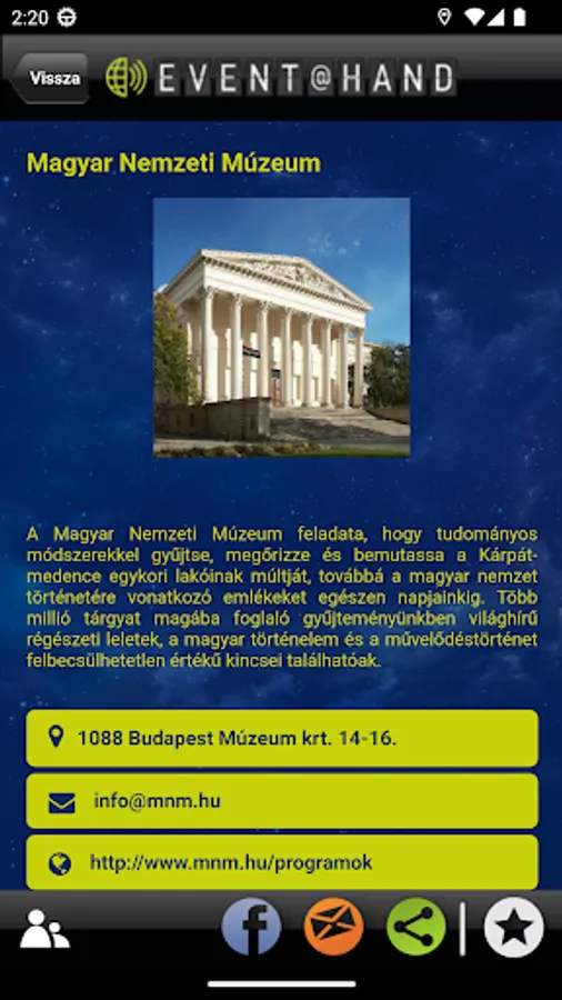 The MUSEUM EVENT@HAND smartphone application was created to support the Night of Museums 2023 event to be held on June 24, 2023.