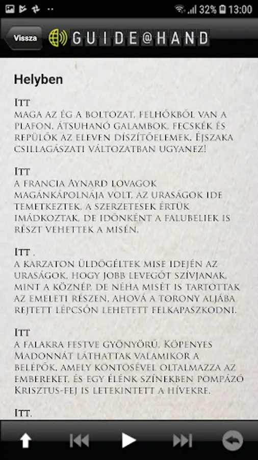 HUNGARIAN: GUIDE @ HAND's full touristic and sightseeing content, maps and software are available in Hungarian, English, German and Russian. You can choose the default language for installation and read and listen to the words below.
