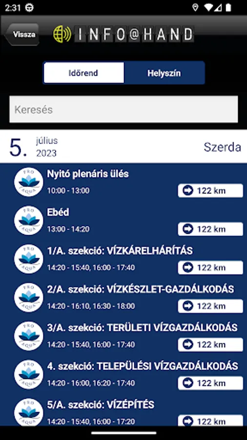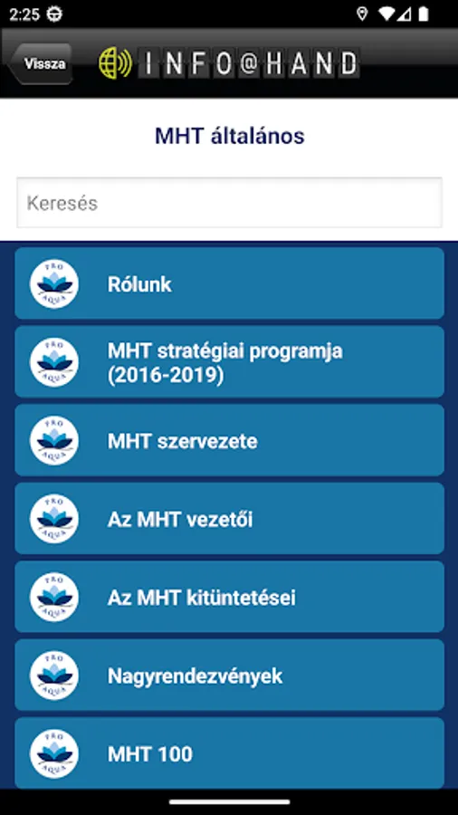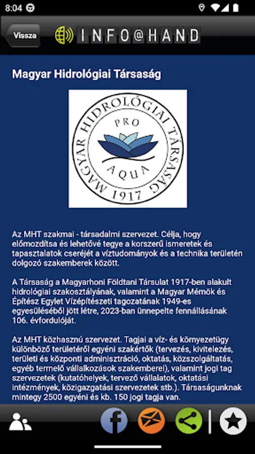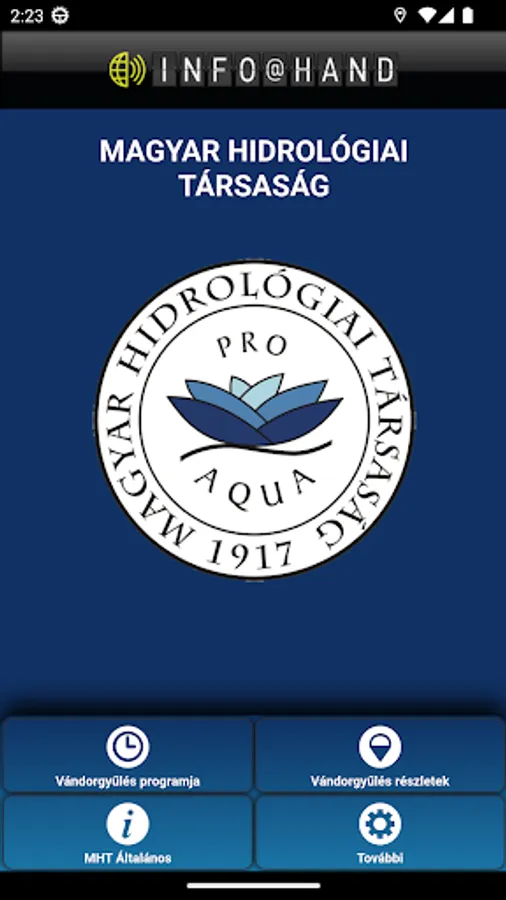 The UAA INFO @ HAND application of the Hungarian Hydrological Society and its professional events shows.
