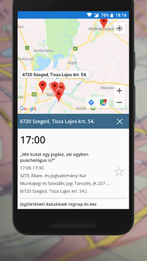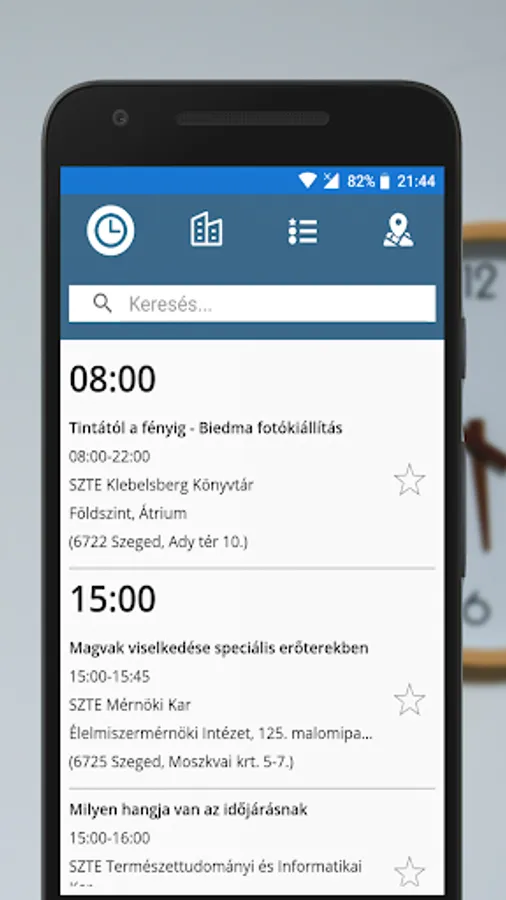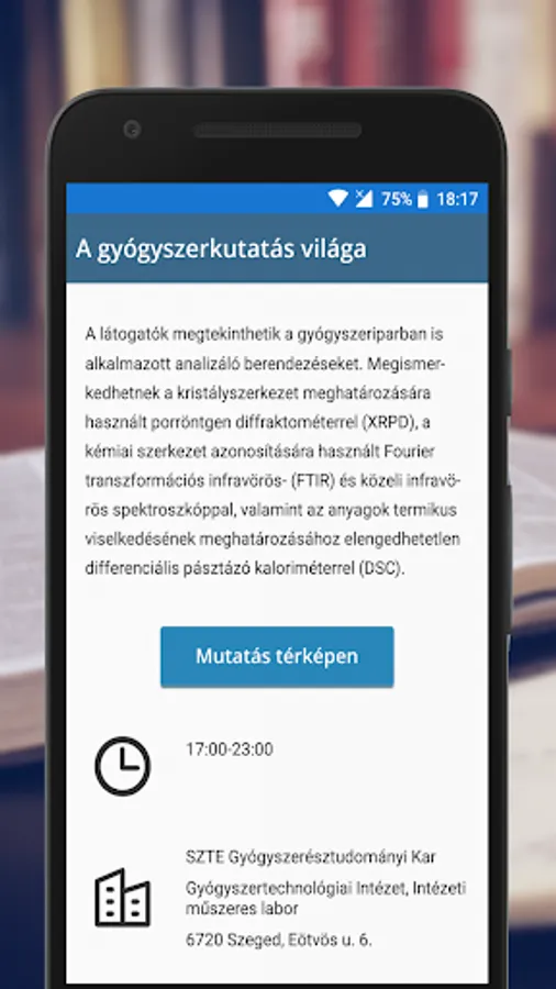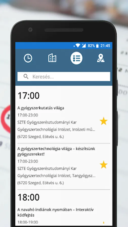 The goal of the SZTE Researchers' Night Mobile Application is to facilitate the participation of the audience in the event, making it easier and more practical to find information.