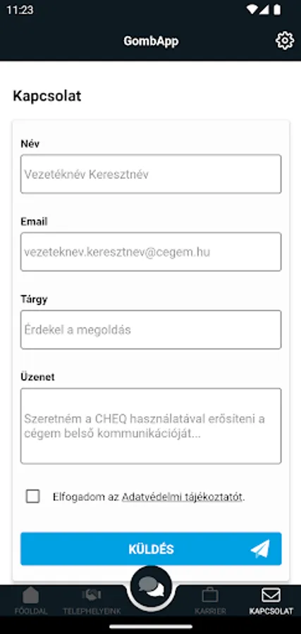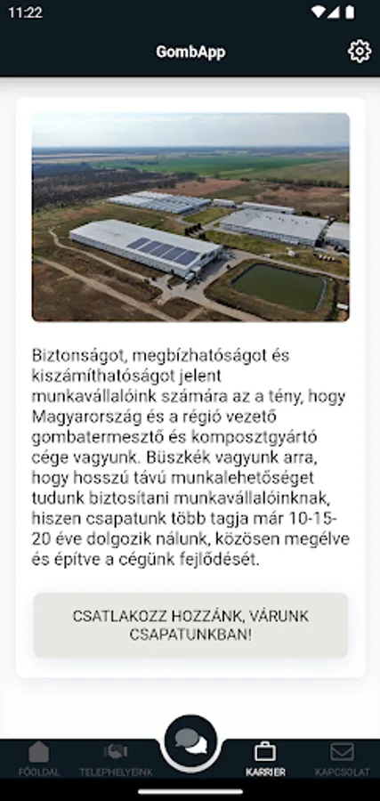 GombApp - Biofungi's CHEQ application for the company's employees, one of the online communication tools of the Talk-A-Bot flagship product line, primarily to support the company's HR and internal communication.