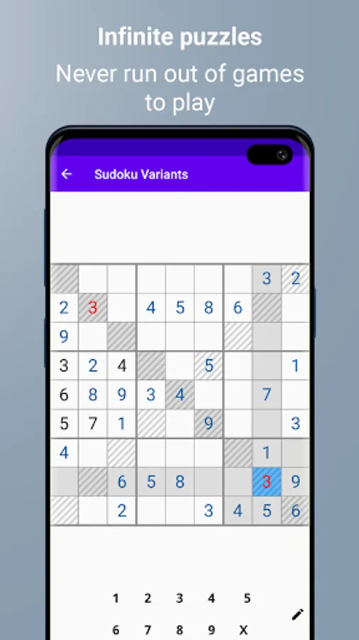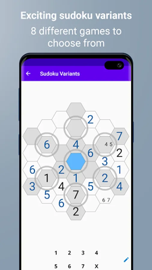 Choose the classic sudoku game, or one of the 7 sudoku variants, which differ in grid size, rules, or even use hexagonal tiles! Enjoy unlimited puzzles, in multiple difficulties, even when you are offline!