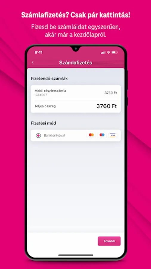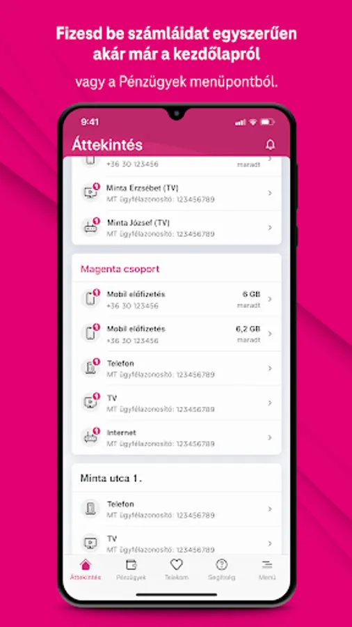 Log in and manage your affairs in one place! Query your balances easily, deposit your accounts with just a few clicks, either one at a time or separately! Top up your own, your family's or friends' balance, see your previous uploads and frequently used phone numbers.