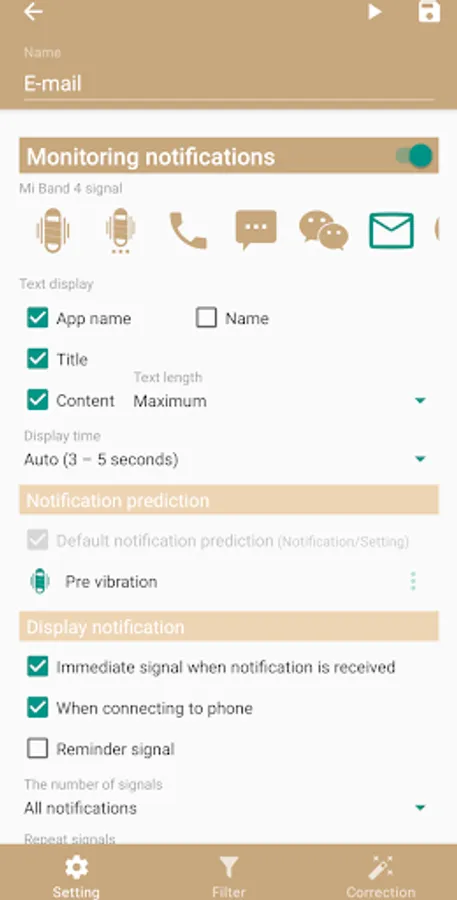 - icon displaying and vibrate on Band