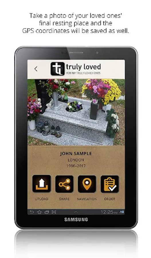 Find the final memorial place of your loved ones and take a picture using out app. Create a memorial page for free, where you can write about your loved one and you can upload pictures and videos. Share it with your family and friends, so they can find the memorial place as well, even in the dark.