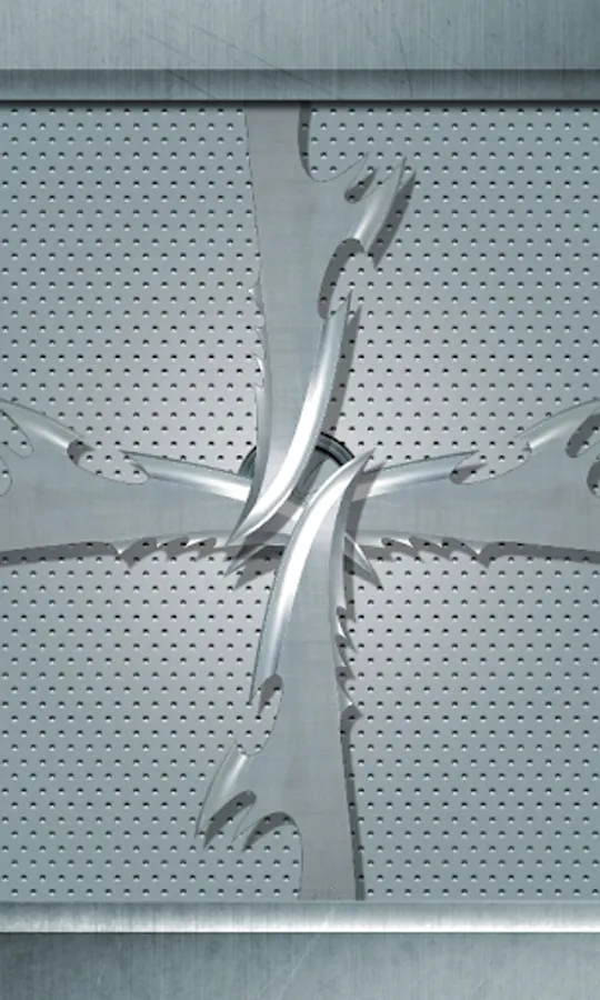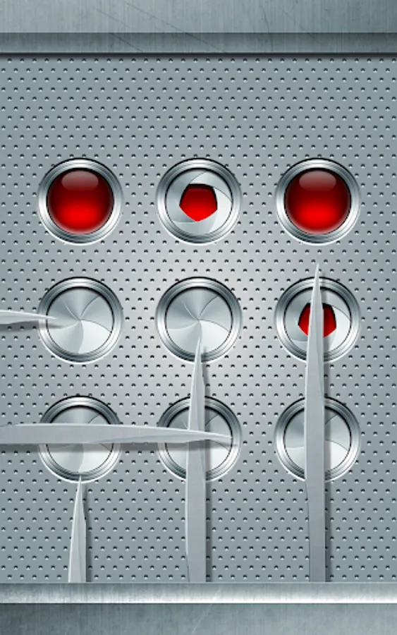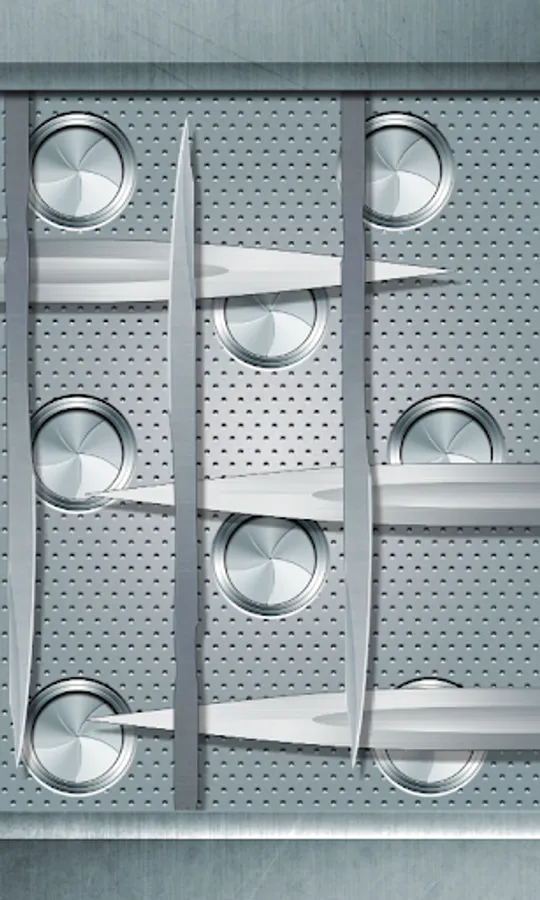 Slice HD is a sinister puzzle game for your Android device. The goal of the game is to clear layers of very sharp blades to push the red button. Push all the buttons in order and you win. While trying to open the puzzle you must not touch the sharp edges of the blades or you will get SLICED. When this happens, blood spills from your finger(s) onto the glass and the puzzle will reset. The blades only move in specific patterns that you must intuit by touch. Often, you must use multiple fingers to hold blades open while you manipulate other blades with other fingers. This game is really about trying to figure out the hidden behaviours of the blades and moving the blades out of the way, carefully.
