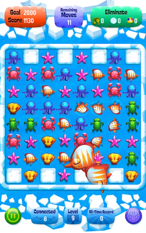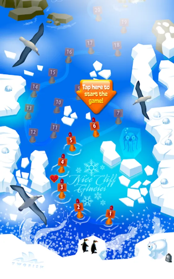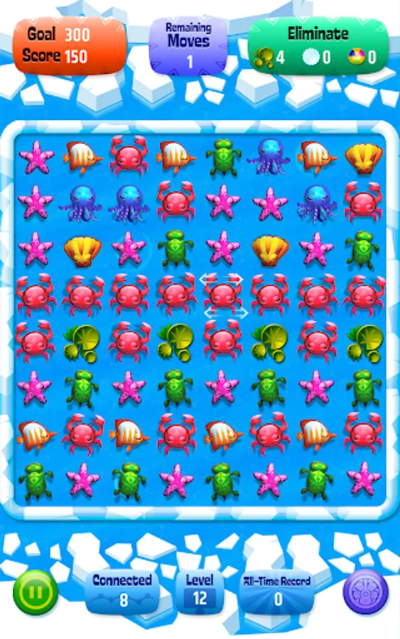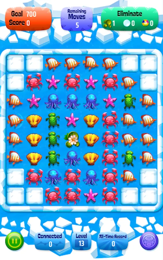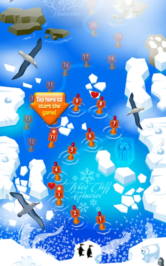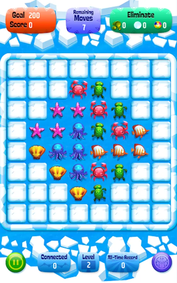 Help the little orphan sea animals. Up till now they had been living happily in the tropical oceans but a giant storm grabbed them and they unexpectidely found themselves in the icy sea. They are shivering, almost freezing among the ice floes. Help them out in their troubles and return them to their home in Hawaii.