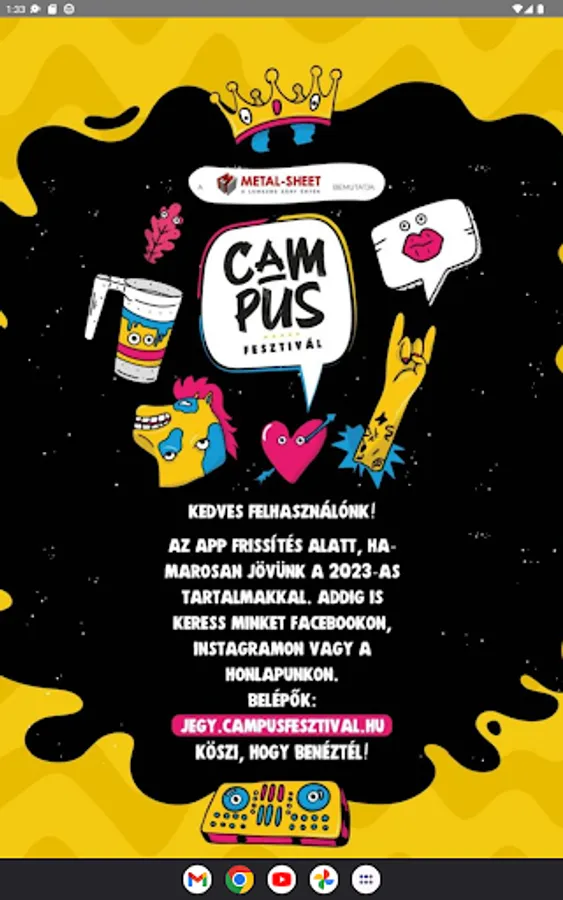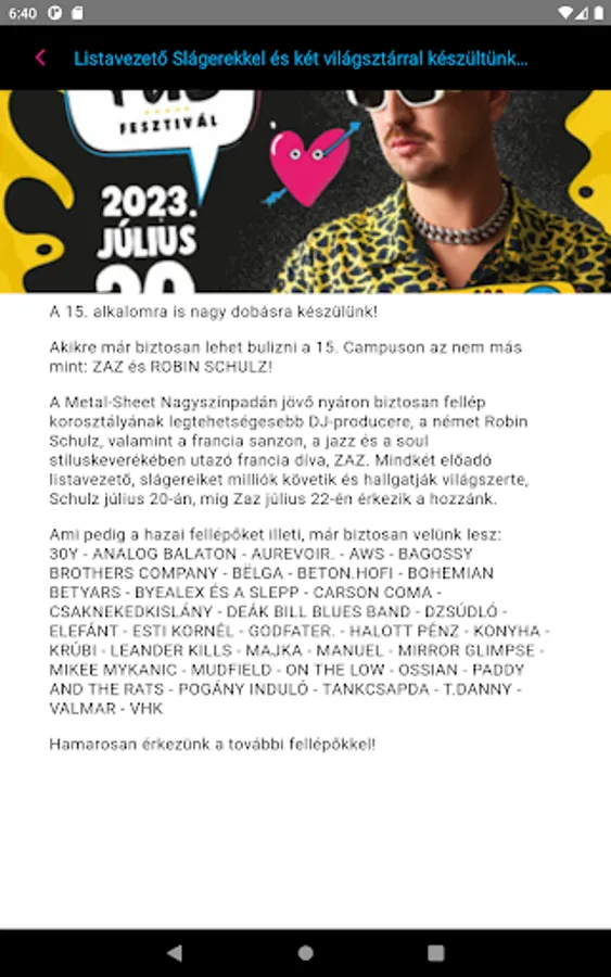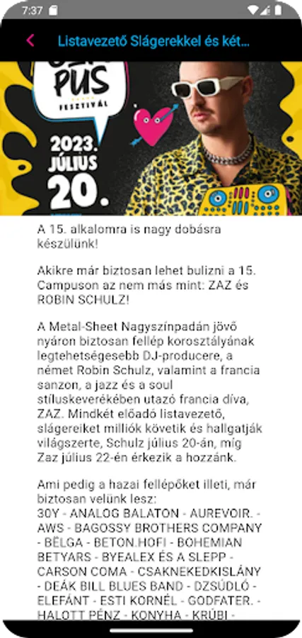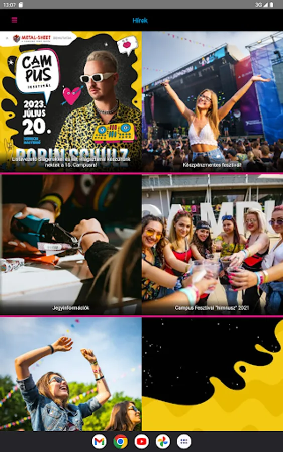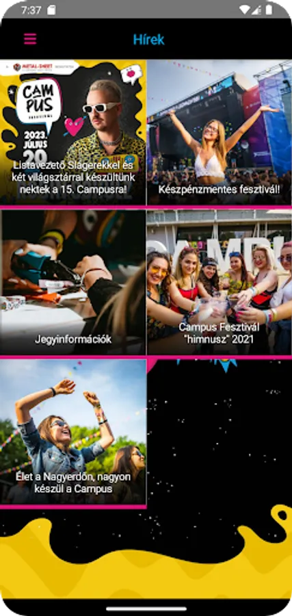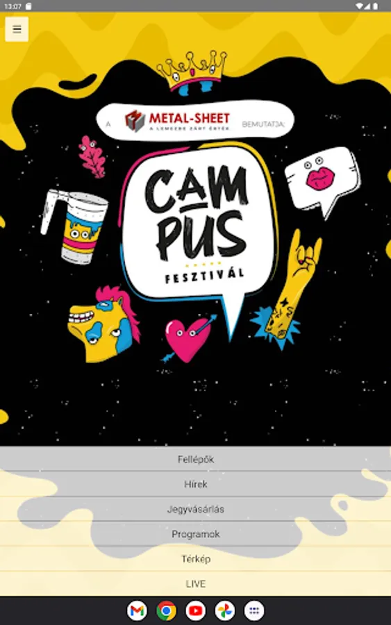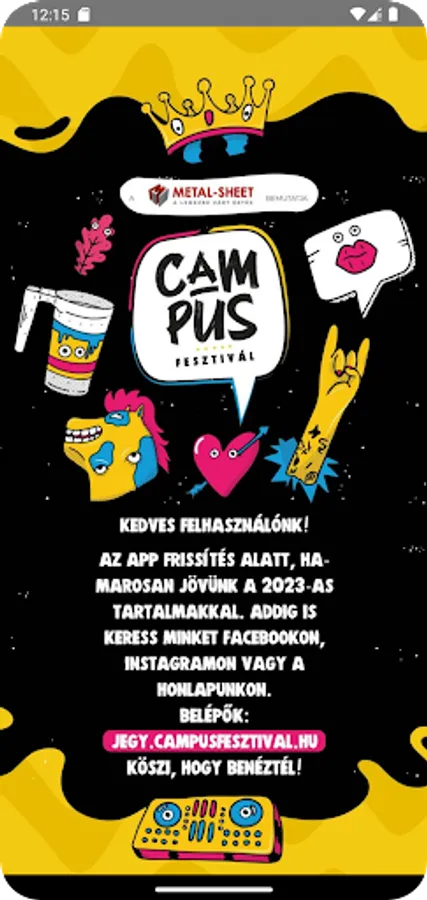 Töltsd le a debreceni Campus Fesztivál hivatalos mobil alkalmazást a telefonodra. Programok, hírek, fellépők listája, térkép, jegyvásárlás és számos hasznos, online funkció elérhetõ a legfrissebb applikációval. Jó szórakozást kívánunk a rendezvényhez!