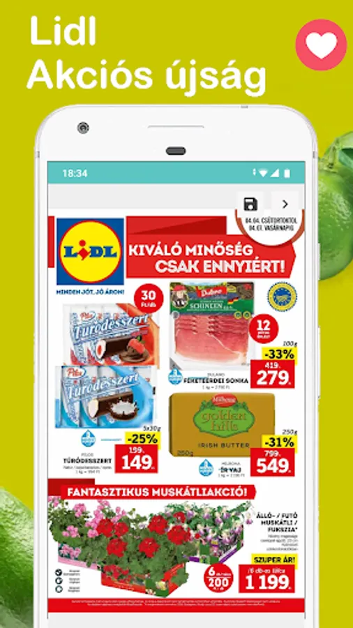 time and choose the right stores for you and at the same time save your money. Double benefit, right? It's simple, mark your favorites in the shops nearby and you will receive notifications on your phone about new shares of your favorite stores. On each page of the promotion catalog there is an icon to save the page to your phone. See the product that suits you, click on the save icon. All pages will be saved to your phone and you can