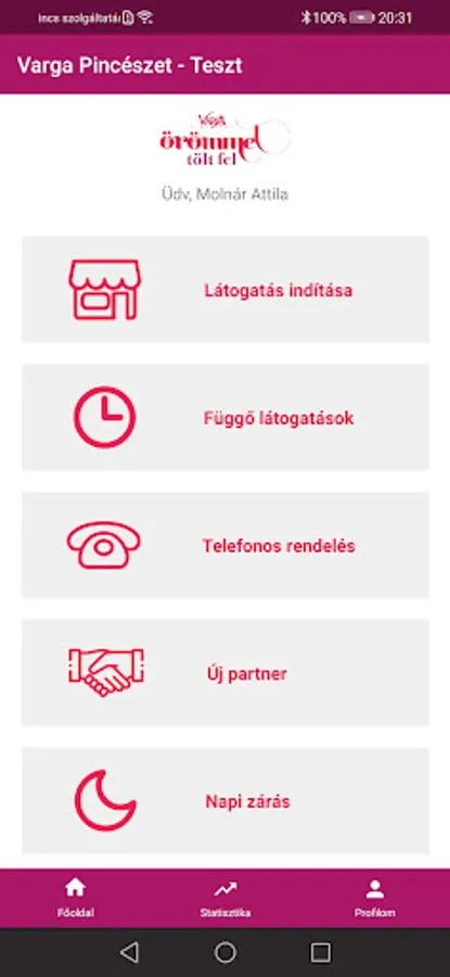 Varga Bor SFA application for Varga Bor employees. It is internal, so users can only access the features of the application with access.