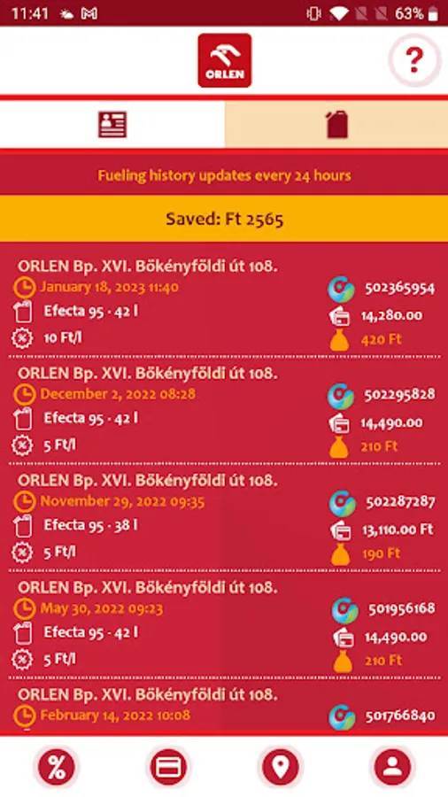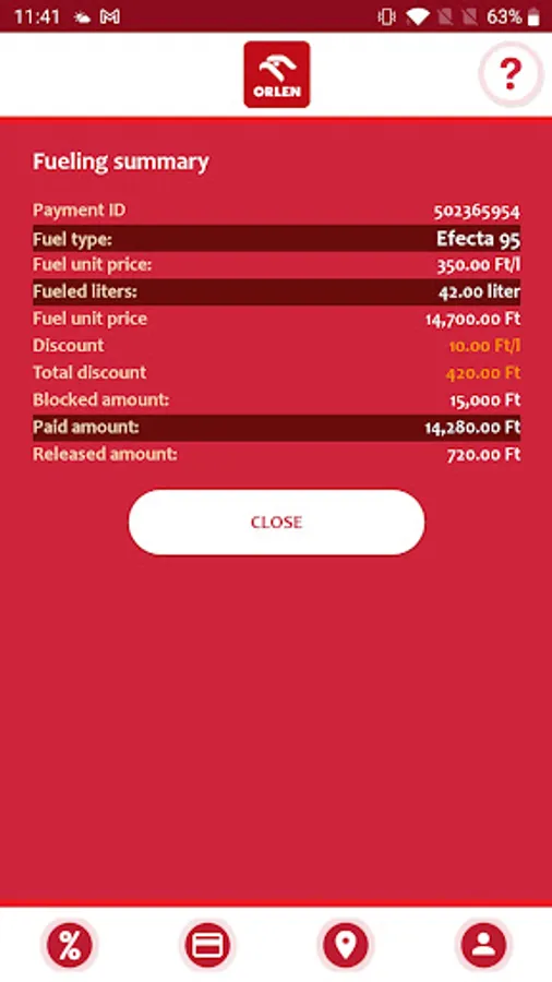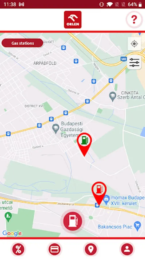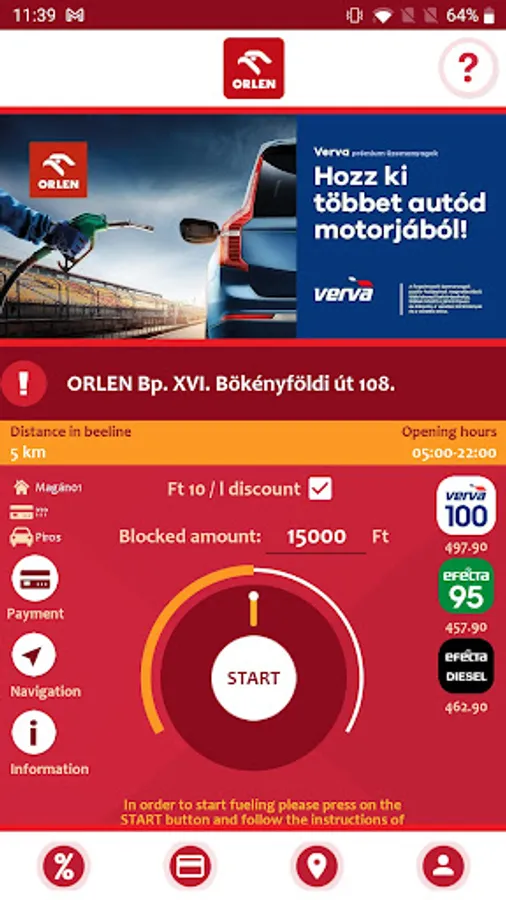Fully self-service fuel filling and discount card application with petrol station information and map for the Orlen network in Hungary.