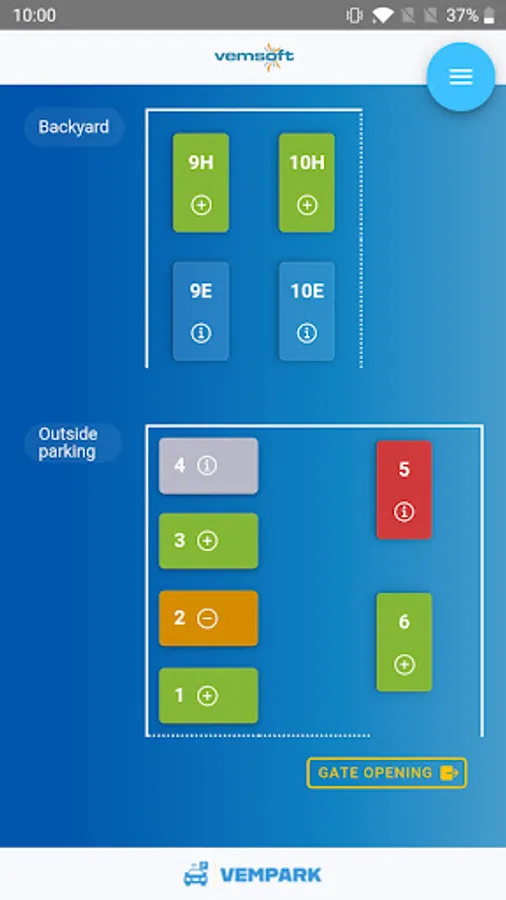 Parking lot management application for shared parking lots. Management and reservation of free and occupied places, gate/barrier opening with the push of a button.