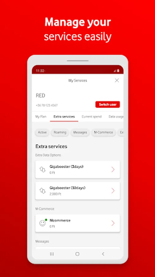 If you have mobile services, you can easily monitor your balance and data traffic in My Vodafone application. You also have the opportunity to purchase data and enjoy the benefits provided by GoodThings.