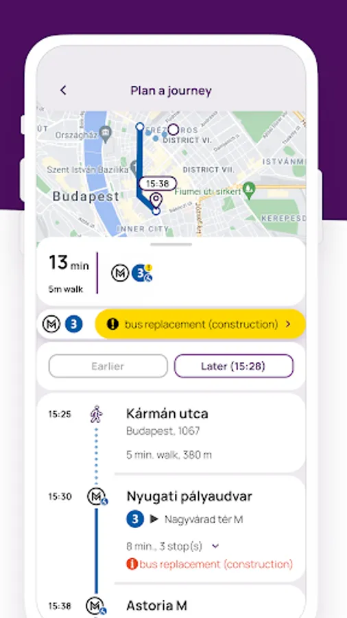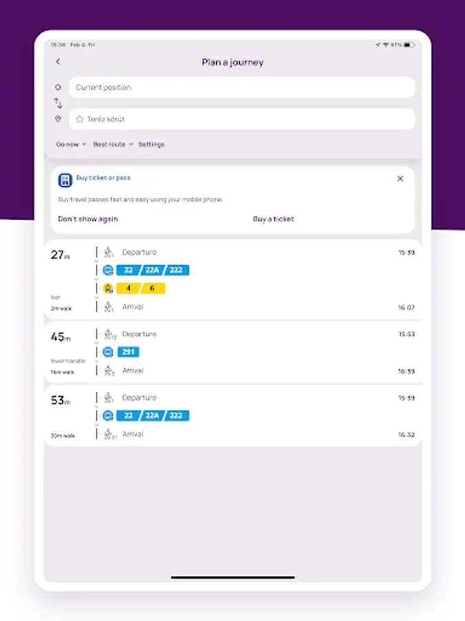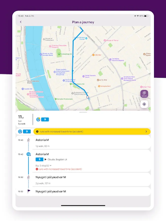 The FUTÁR application by BKK Centre for Budapest Transport has been renewed under the name BudapestGO, which, in addition to real-time route planning, has been extended with new functions: you can buy digital single tickets, daily and weekly travelcards or passes in the application and you can also be informed immediately about the current transport service changes. You can use the route planner with a cleaner and clearer interface, facilitated by a number of new features.