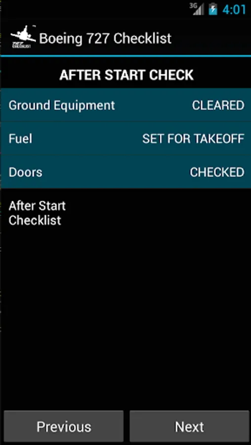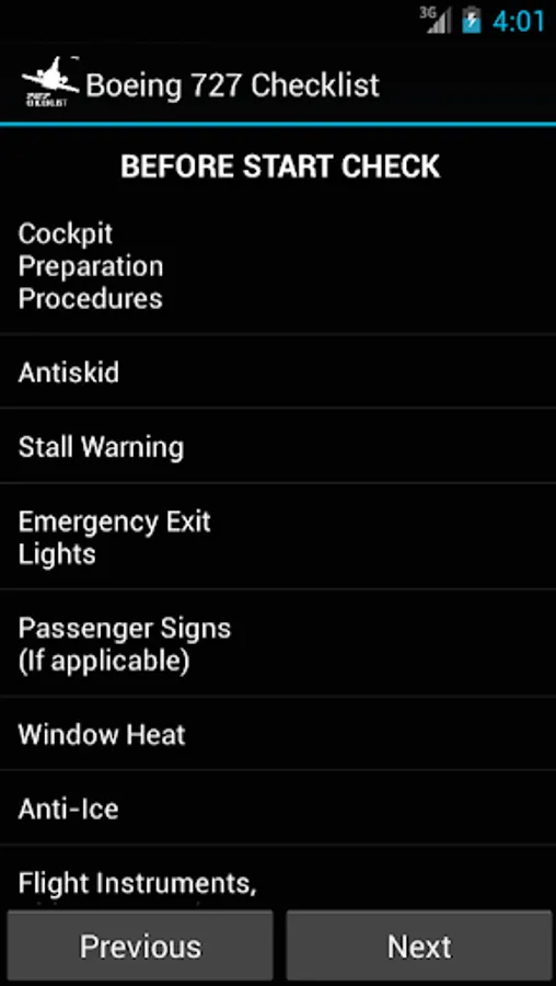 This app helps you to follow the standard checklist procedures in B727 cockpit.