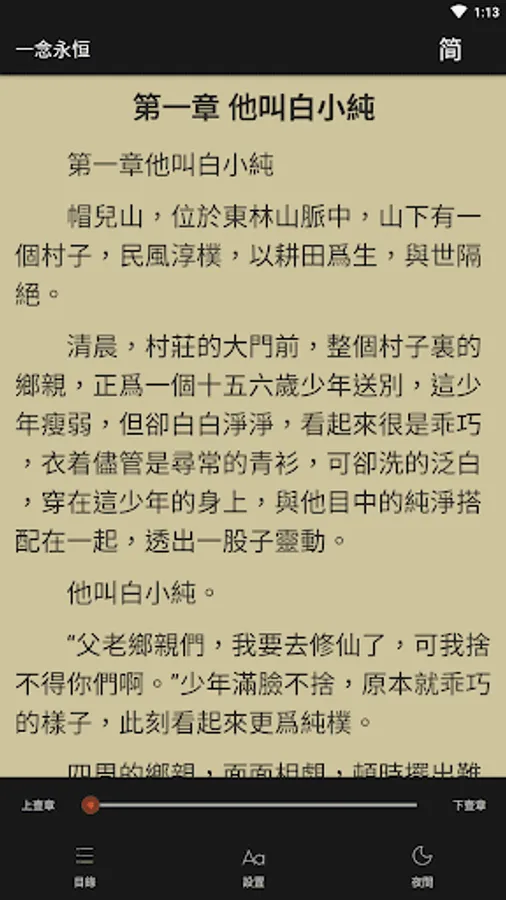 The function is simple and complete, there is a complete catalog, and the background when reading is also multi-choice, there is always one that suits your eyes, the volume button is used as a page-turning button, switching between traditional and simplified, brightness is adjustable, font size is adjustable , there are various page turning effects.