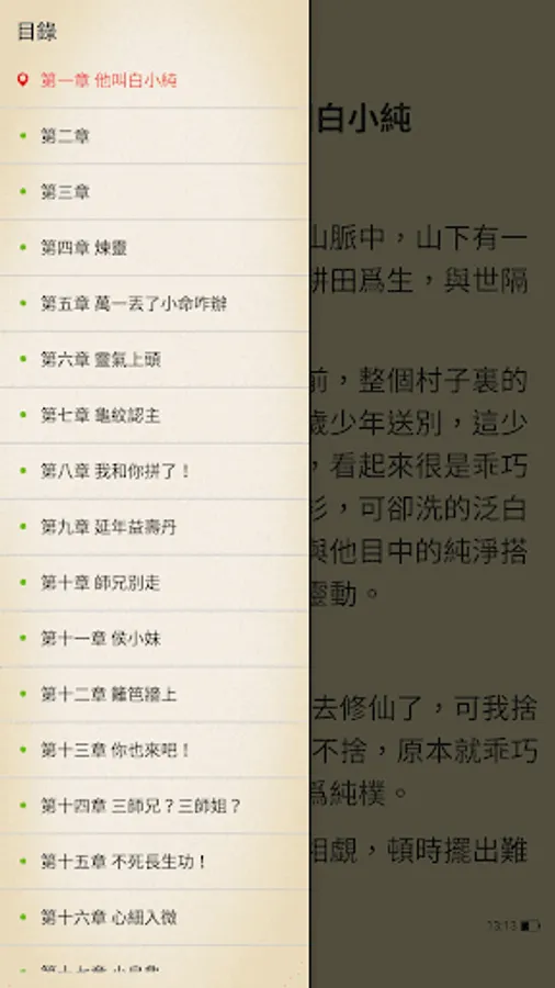The function is simple and complete, there is a complete catalog, and the background when reading is also multi-choice, there is always one that suits your eyes, the volume button is used as a page-turning button, switching between traditional and simplified, brightness is adjustable, font size is adjustable , there are various page turning effects.