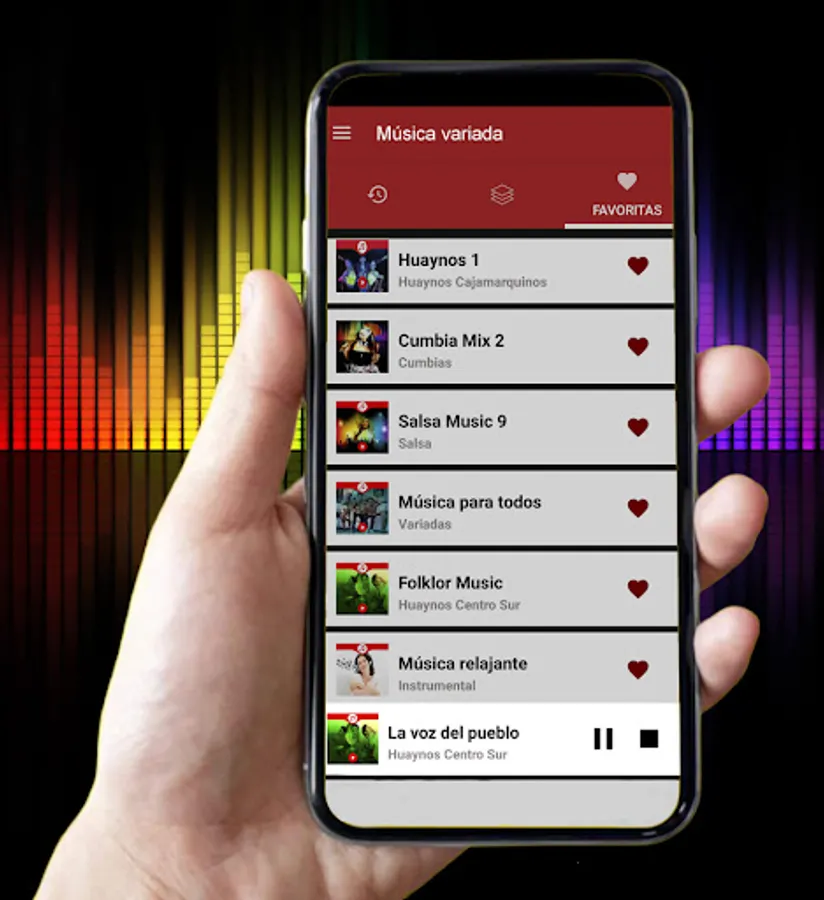 More than 100 varied radio stations from countries such as: Peru, Argentina, Ecuador, Mexico, Colombia, Chile, Spain, etc.