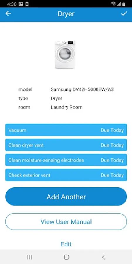 Once the Home Hub App has found the appliance it will post details within the App of simple home maintenance tasks you can do to extend the life of your appliances. These tasks also help to reduce running costs of appliances and help you to avoid costly repairs and even more costly replacements of your major appliances such as HVAC systems, fridge/freezers, dishwashers, washing machines, dryers and more.