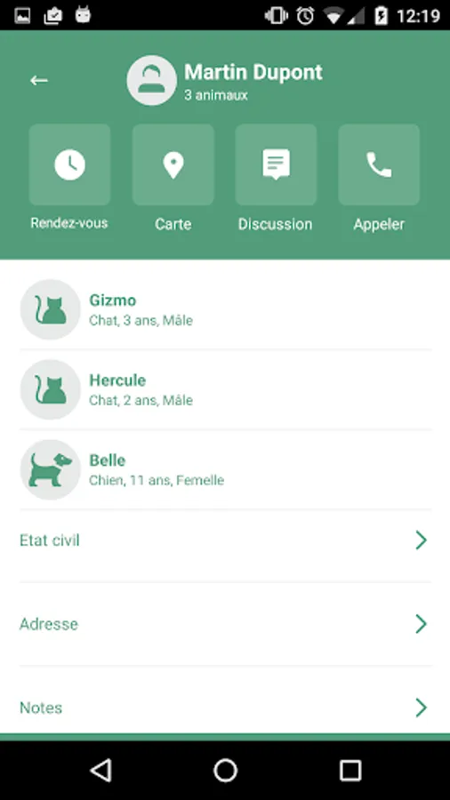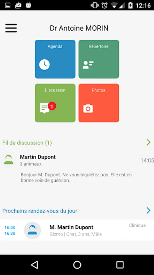 Connect your mobile to your clinic's dr.veto software solution. Access your customers' calendar and contact details anytime, anywhere. Automatically and instantly integrate a photo of the animal into its medical file. Use the chat thread to address your customers' concerns.