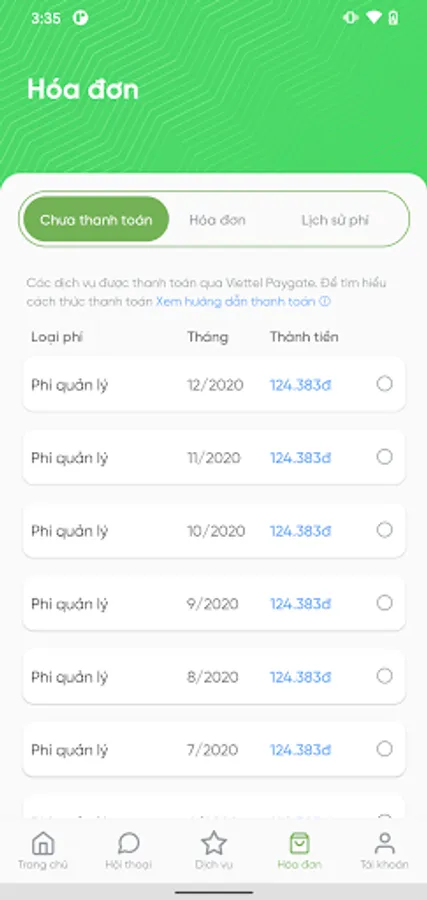 Application of technology to improve service quality for apartments. Optimize time as well as efficiency in paying residents' costs