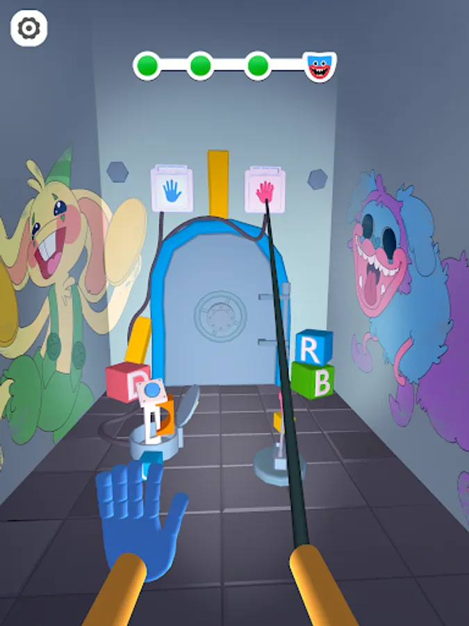 One of the main game features is an escape from the room. In all rooms, you need to open the doors to pass on! Control both your power hands in correct order to make everything work and solve puzzles fast. Try not to get into scary monster hands: Huggy Wuggy, Mommy Long Legs, Bunzo Bunny and even Poppy. Play Time against them!