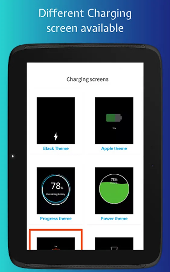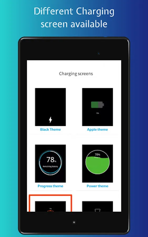 - Select theme of charging screen.