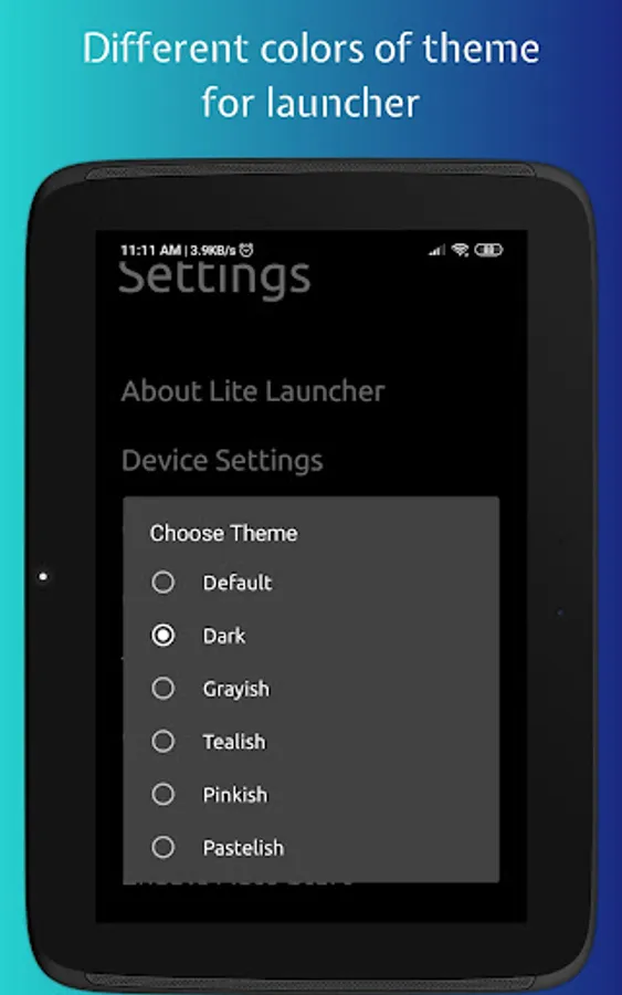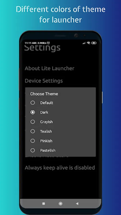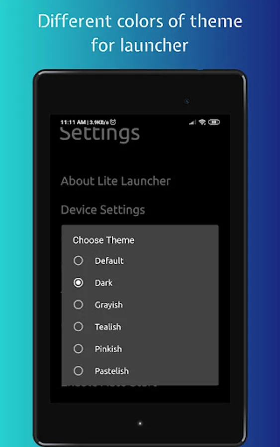 1) No wallpapers: Of course Lite Launcher comes with a few color themes .