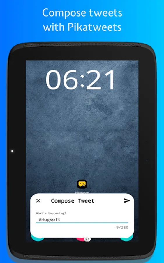 You can tweet from notification area with this application.Or when you tap on notification, a dialog will be launched for tweet.