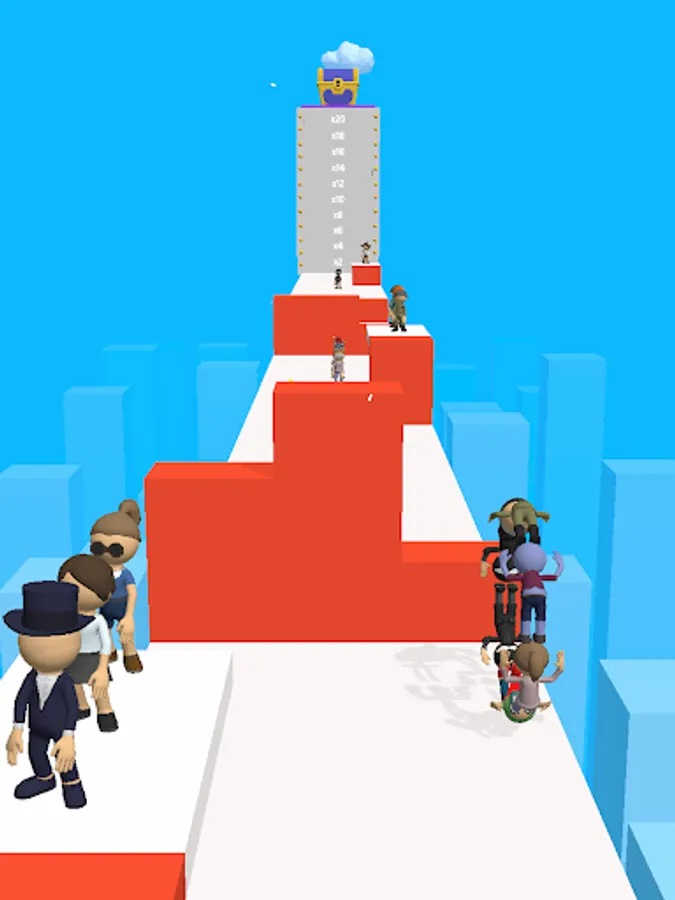 Start running alone and gather people on your way to collect a massive wheel. Lead your team through all sorts of moving, rotating, and expanding obstacles. Calculate your moves on the run and save as many members of the wheel as possible.
