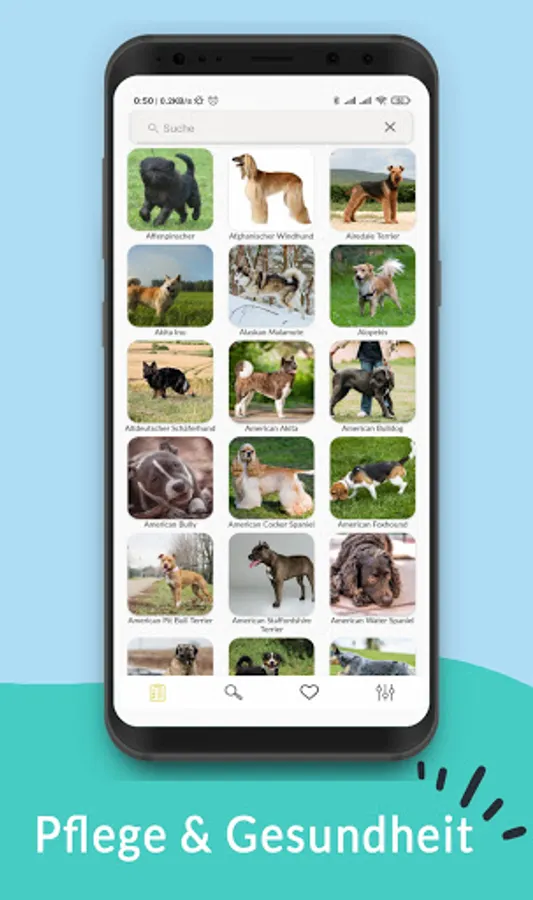 Large overview of different dog breeds. Ideal if you first find out about the possibilities and look for your dream dog.