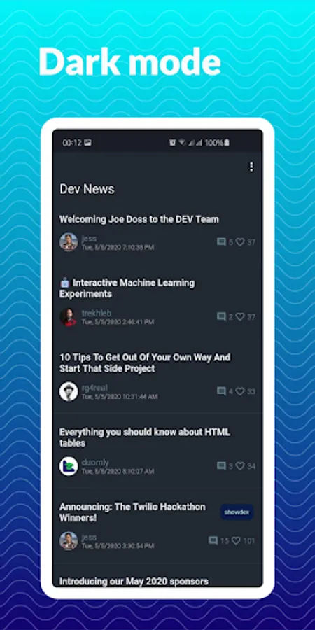 DevNews is open source Flutter application that using dev.to api to fetch articles.