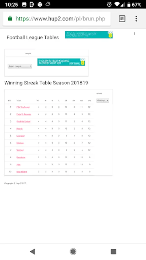 Dynamic League Tables - Football League Tables for Various Countries.