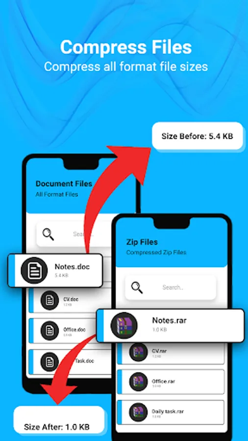 Unpack your zipped and rar files with unzip files📂 extractor app. Manage your zip, rar files with Zip unzip files manager. A zip files unlocker, that can unlock 🔏your zip files and rar files as well. The zip feature of Zip unzip files-RAR files📂 opener and extractor application, turn your large memory zip files into unzip files. You can easily free up the memory space of your mobile by zipping large files📂 with this ultra-high compression of zip unzip application. Compress all your docs simply with a zip file compressor. Read and extract your zip files, rar files📂 and unzip files from your phone with the fast-extracting operation of Zip unzip files-RAR files opener and extractor application. Open, read, view, compress, cut, paste, copy, share, delete archive files with zip unzip files📂 extractor. Zip Unzip app works on the principles of encryption, it rapidly encrypts the zip files📂 for making data secure and protects data from losing.