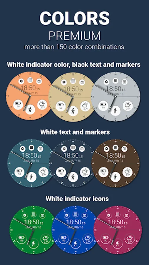 ★ Ability to edit options with the Watch Face preview. You can adjust options like background and indicator background color, set indicator icon and text color, set hour or minute numbers, set marker color and marker style or set indicator options using LIVE EDIT mode